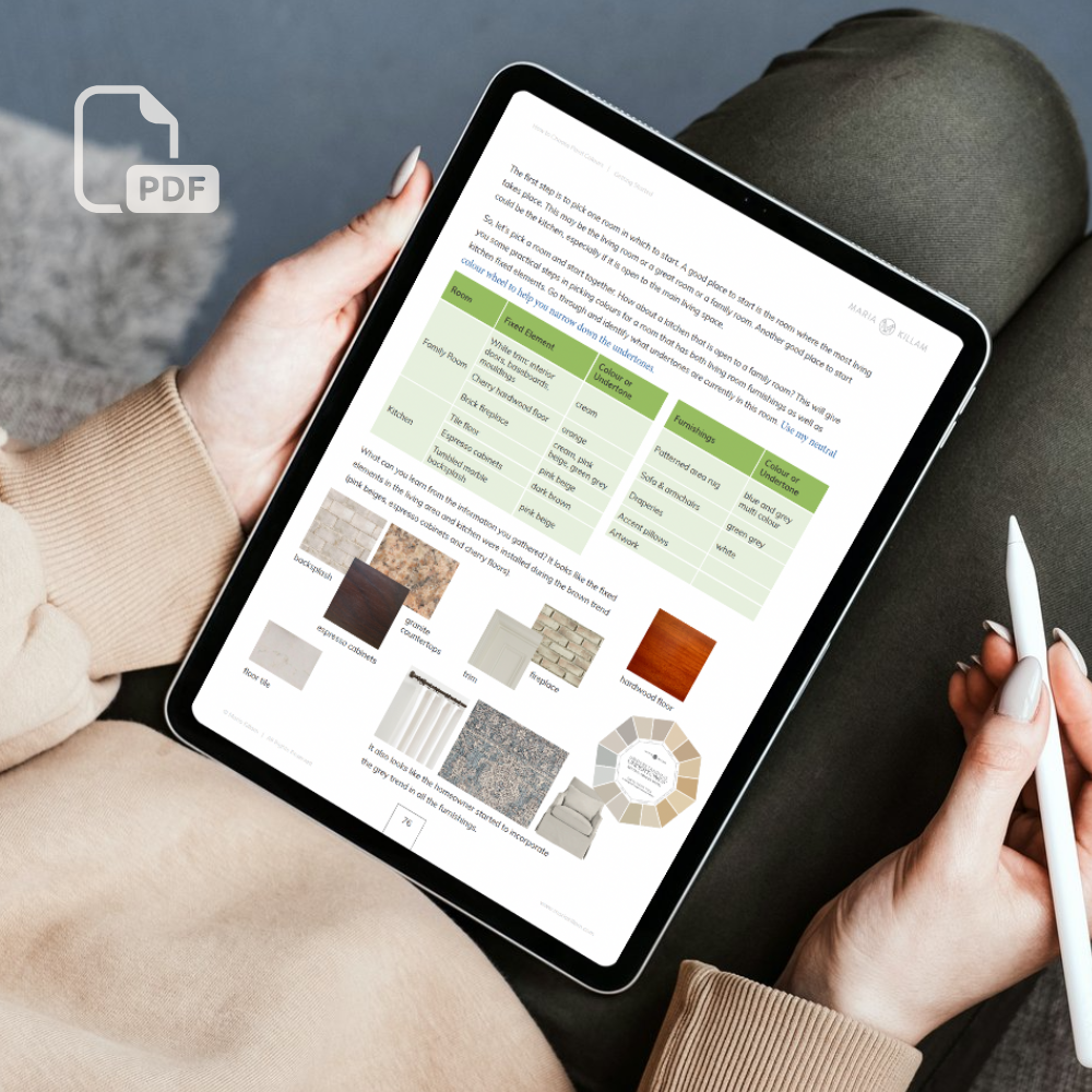 This eBook is your ultimate guide to selecting the perfect colours for your home. Learn Maria’s proven system for identifying the 9 most useful neutral undertones and discover a step-by-step process for choosing a cohesive colour palette. Understand the importance of comparing colours to create harmony in your space.
