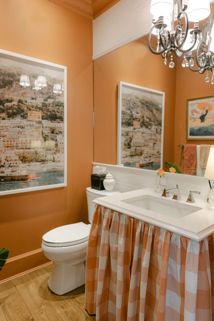 Then I added art and now. . . I’m not sure I’ll ever circle back to any renos in this bathroom I love it so much. I could also have painted the tile the same colour as the rest of the bathroom and I may still do that.