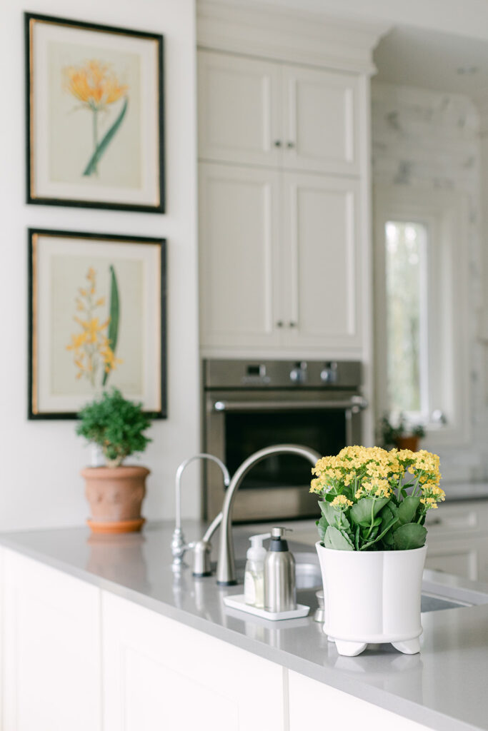 Art and plants add interest in my kitchen