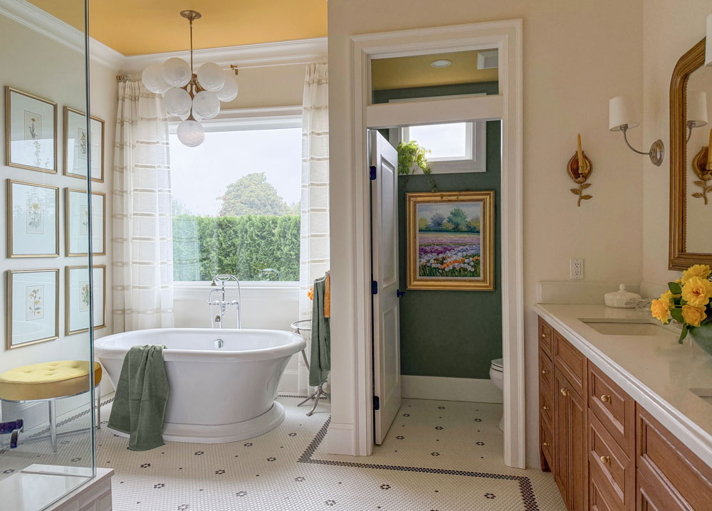 Gorgeous!! Love the transom windows- they are so perfect in this room. The bathroom truly is an elegant timeless design.