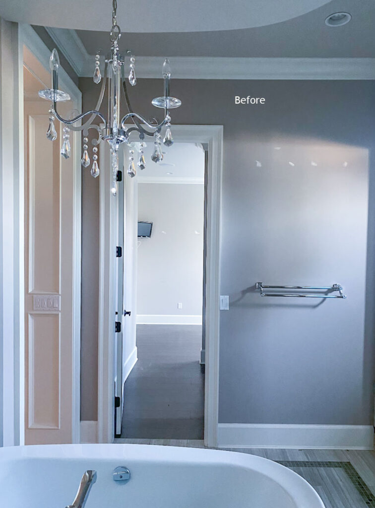You’ve seen a few glimpses of my primary bathroom. But finally! My horizontal striped, sheer drapes were finally installed (only 2 1/2 years later 😬) so here is my official primary bath makeover reveal.